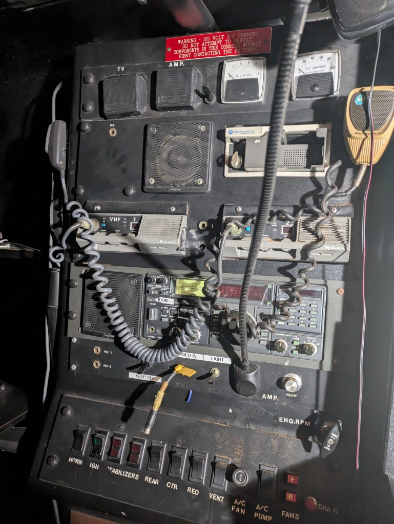 - GE Analog Gauges: These provided a real-time “health check” of the auxiliary battery bank. In a high-drain environment with multiple CRTs and radios running, monitoring the batteries was critical to ensure the van didn’t die in the middle of a sting.