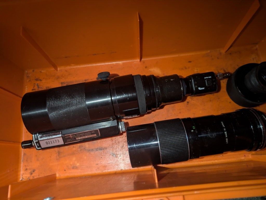 We’ve discovered boxes containing an assortment of loose cameras and high-zoom lenses, ranging from standard surveillance glass to specialized lenses.
