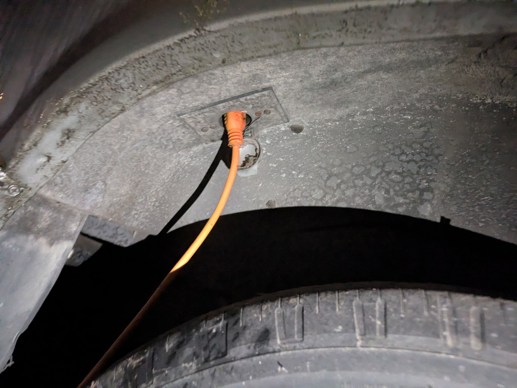 - Stealth Charging: This allowed the squad to run a heavy-duty extension cord to a “safe house” or a nearby building. To a passerby, it looks like a mundane service cord for a utility van, but inside, it was providing the 110V AC “Shore Power” needed to keep the racks running and the auxiliary batteries topped off indefinitely.