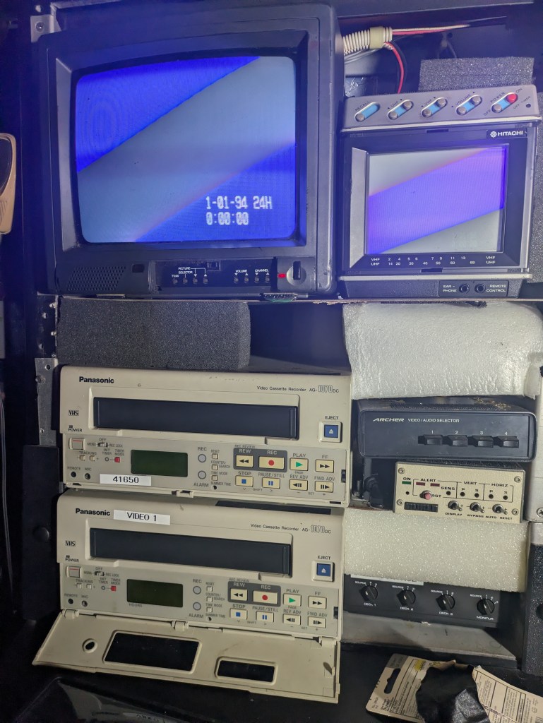 - The Evidence Decks: Both Marantz PMD audio decks and both Panasonic VCRs have power. However, “Video 1” has a tape stuck in the transport—a literal piece of history frozen in the machine. We haven’t loaded tapes into the Marantz decks yet, awaiting a full cleaning.